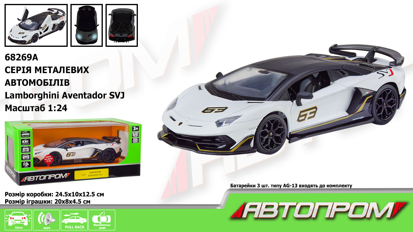 Машина мет. "АВТОПРОМ" 1:24 "Lamborghini SVJ", бат.., мир., звук, откр.дверь, капит, багаж., в кор. 24,5*12*10см (12шт/2)