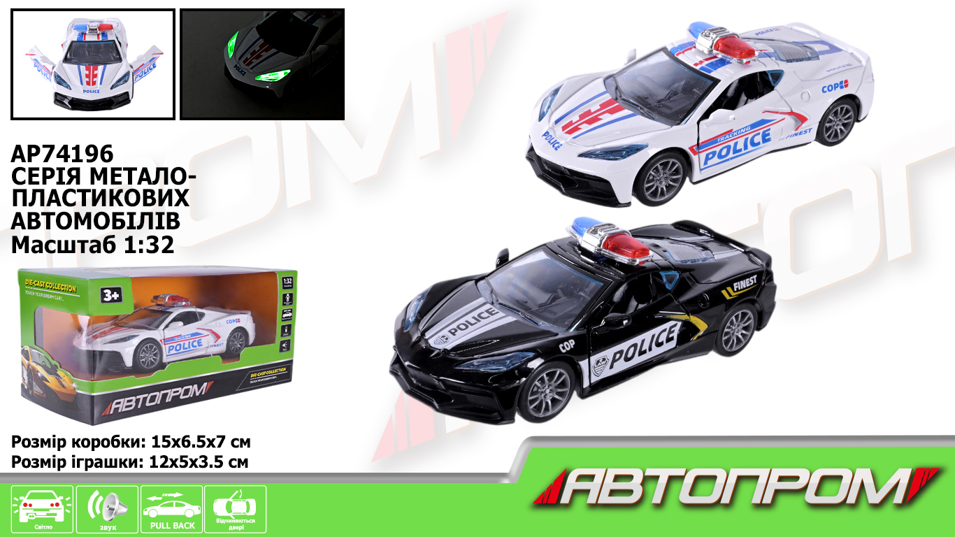 Машина мет. АВТОПРОМ 1:32, 2 цвета, откр.двери, бат., свет., звук, в кор. 15*6,5*7см (48шт)