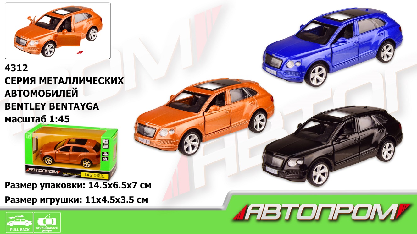 Машина метал. "АВТОПРОМ", 1:45 BENTLEY BENTAYGA, 3 цвета, откр.двери, в кор. 14,5*6,5*7см (96шт/2)