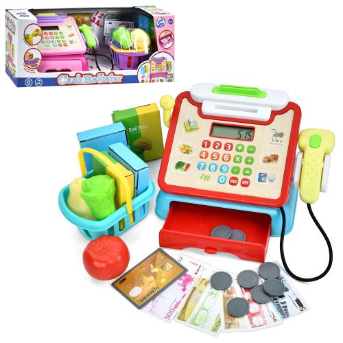 Кассовый аппарат сканер, микрофон, калькулятор, продукты, деньги, корзина, 2 цвета, на батаре. в кор. 43*16,5*18см (16шт)