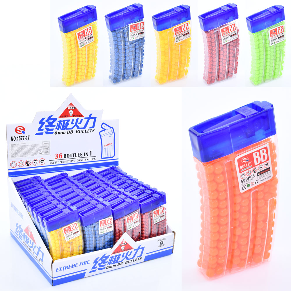 Пули 6мм, пластик, колба 5,5*11*2см, ЦЕНА ЗА 1ШТ, В УП. 36ШТ (6цветов) в дисплее, 24*11,5*19см (288шт)