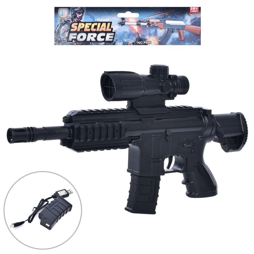 Автомат 37см, стреляет водяными и пластиковыми пулями, аккумулятор, USB зарядное, пак. 41*22*3см (8шт)