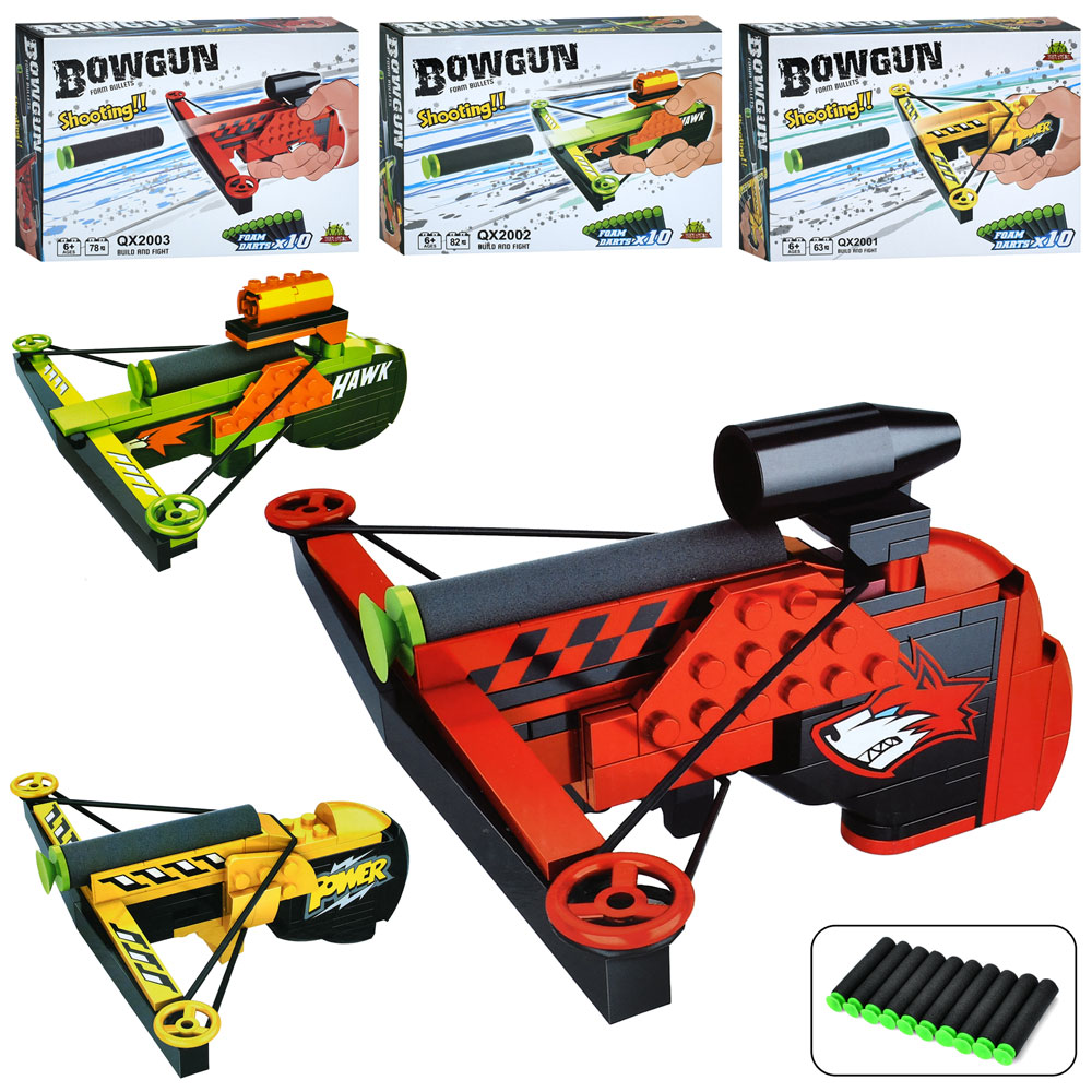 Арбалет мягкие пули-присоски 10шт, разобранный (конструктор), 3 вида (63дет, 78дет, 82дет), в кор. 22*15*4,5см (60шт)
