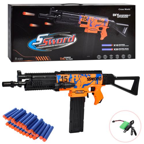 Автомат 83см, аккум, лазер, мягкие пули 30шт, USB зарядное, в кор. 55,5*26,5*8,5см (8шт)