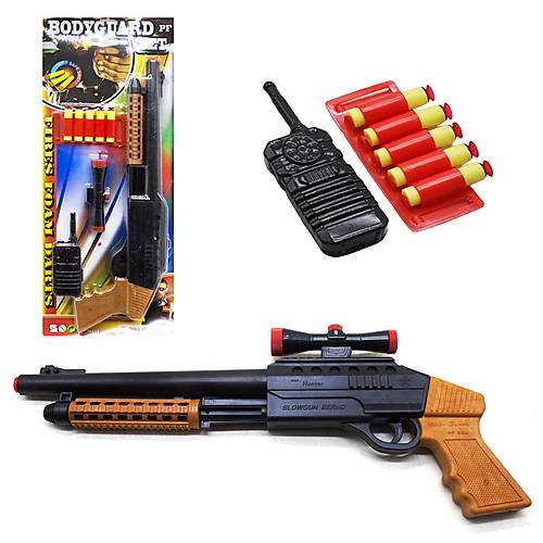 Ружье "Бодигард ПФ" с мягкими пулями, рацией, гранатой и нож, на планш. 58*23см (24шт)