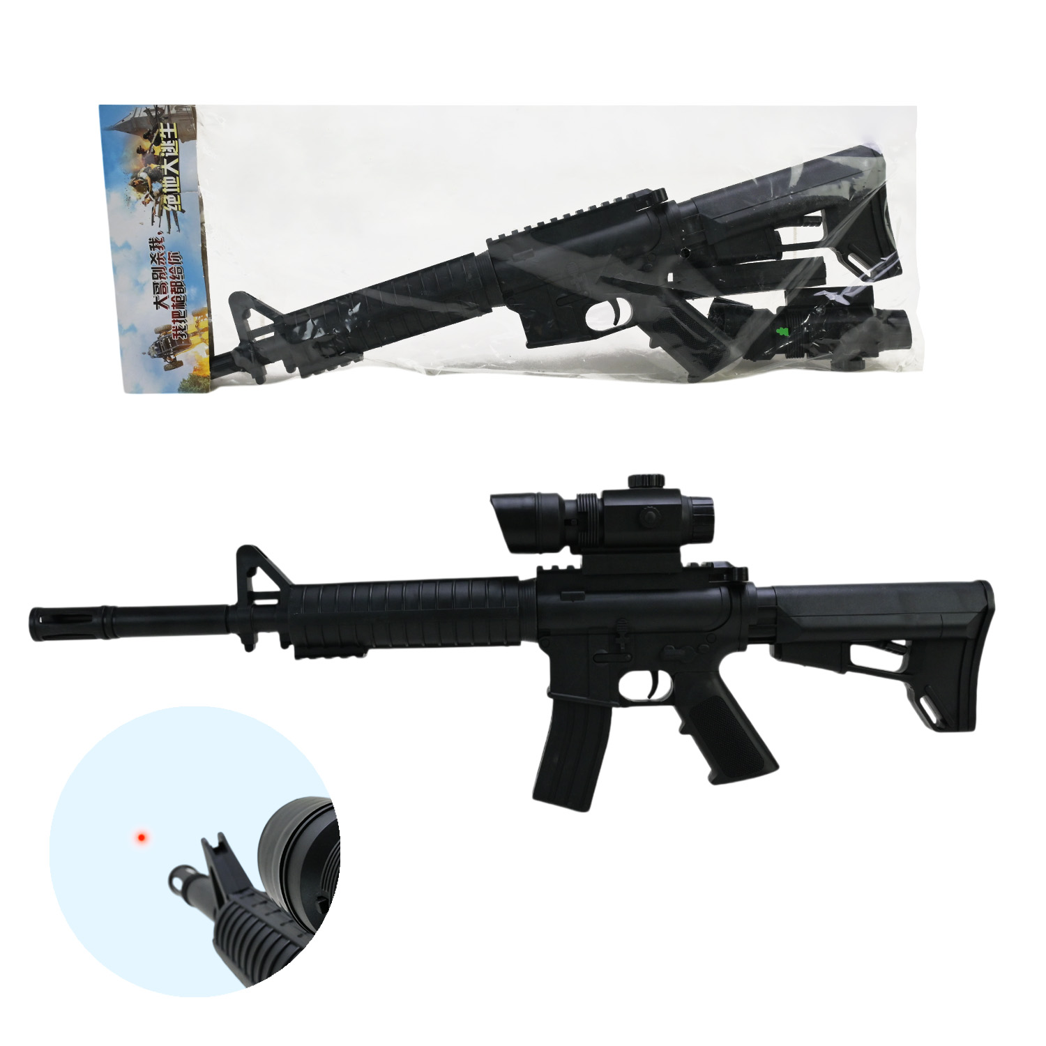 Автомат, бат., лазер, пульки, пак. 19*3,5*54см