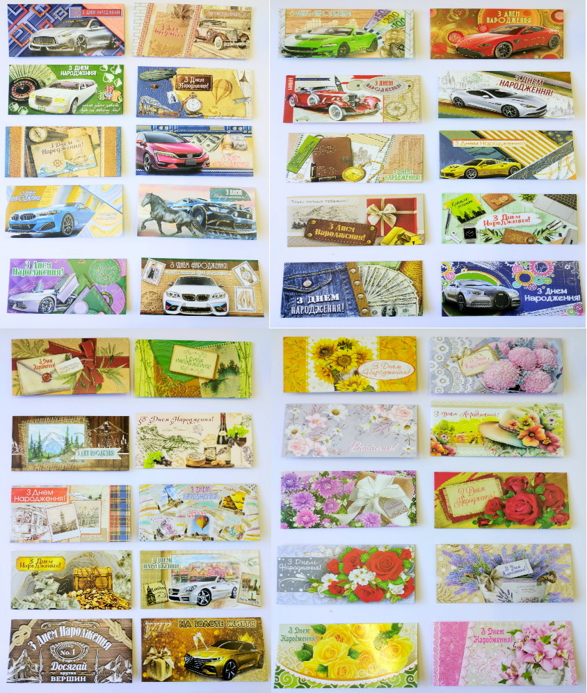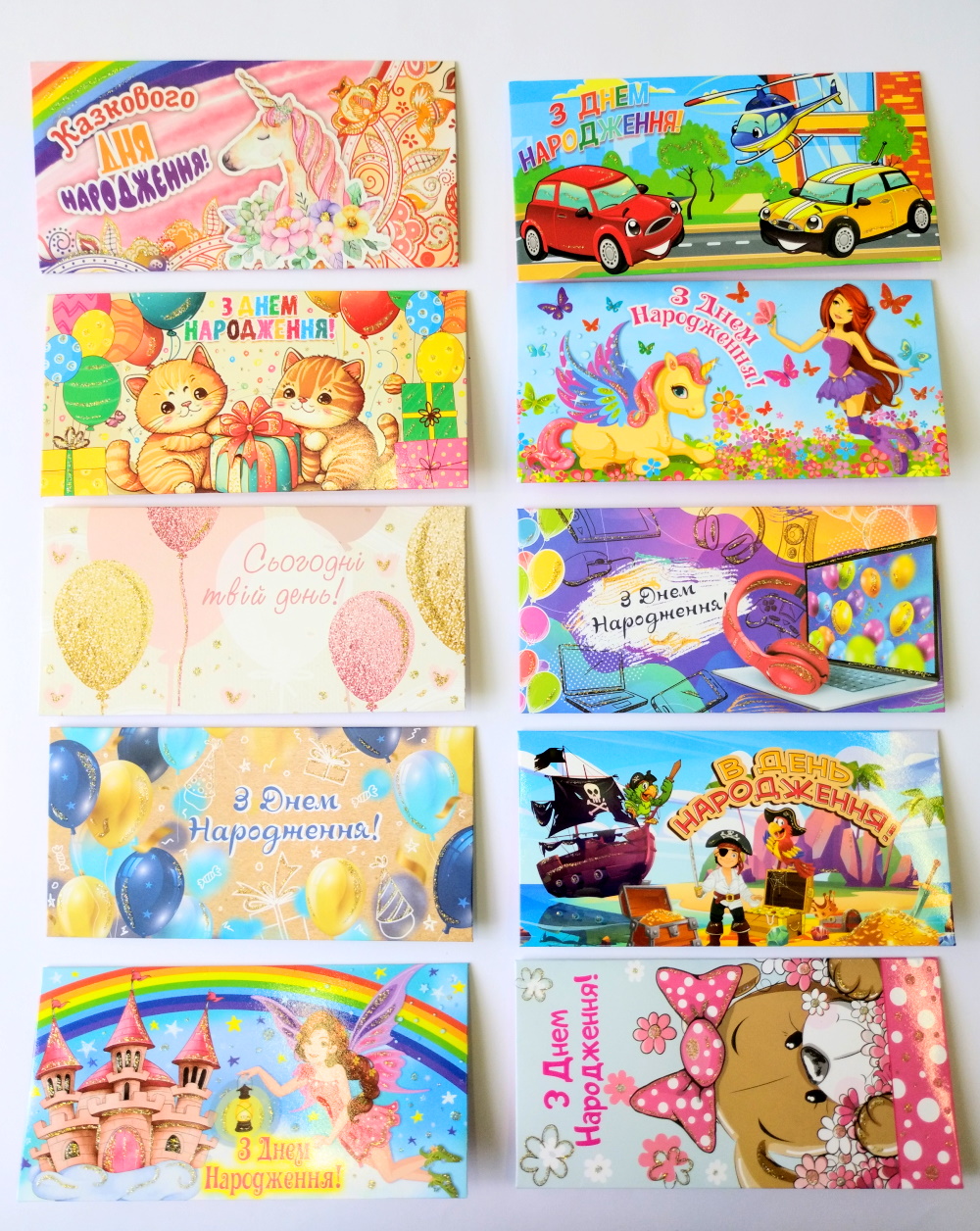 Открытка-конверт для денег День Народження, микс видов, 17*8,5см, ТМ Etude line, Украина