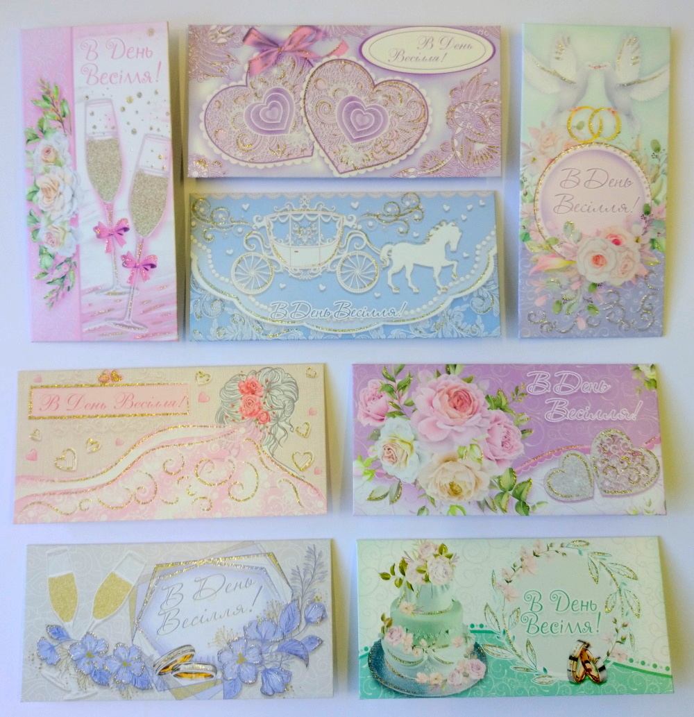Открытка-конверт для денег Весілля, микс видов, 17*8,5см, ТМ Etude line, Украина