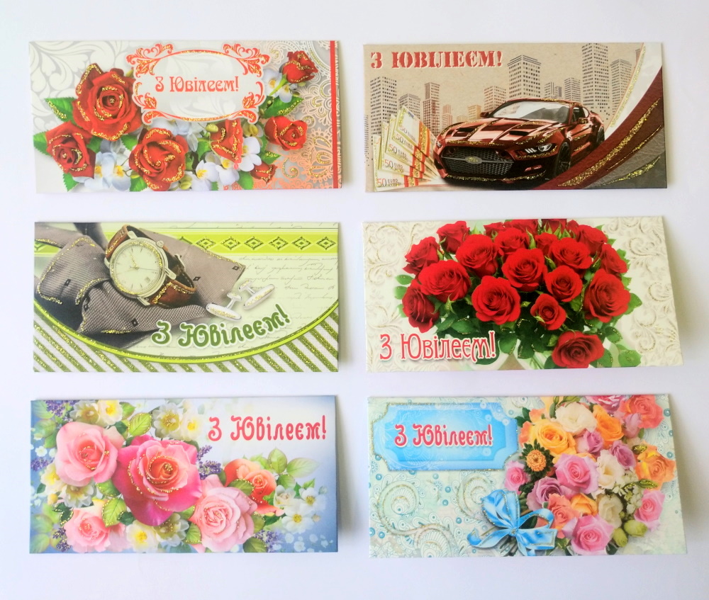 Открытка-конверт для денег Ювілей, микс видов, 17*8,5см, ТМ Etude line, Украина