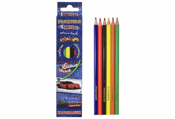 Карандаш "Sport car", Мультяшки, 6 цветов, гнущиеся, в кор. 20*5см