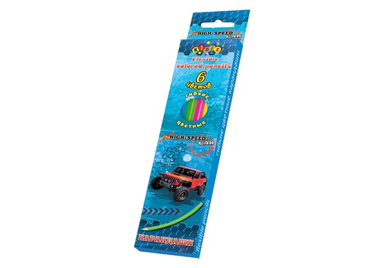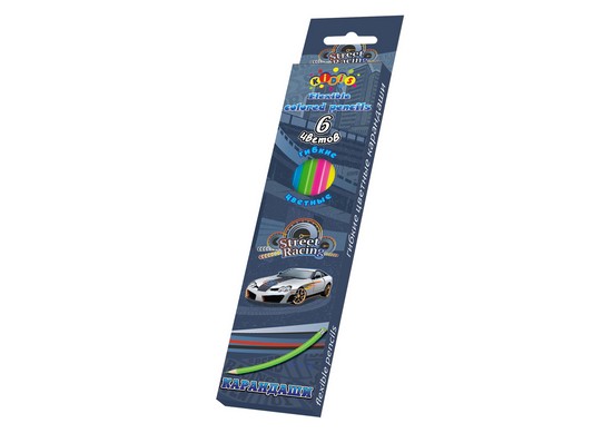 Карандаши "STREET RACING", 6 цветов, в кор. 5*20см