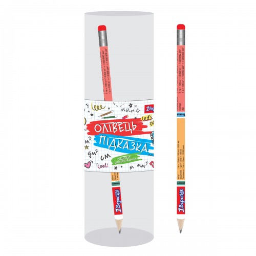 Карандаш ч/гр круглый с ластиком "Единицы измерения", ЦЕНА ЗА 36ШТ, туба. 20*5см, ТМ 1 Вересня, Украина