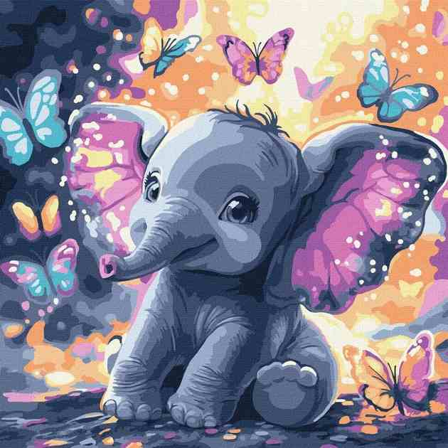 Картина по номерам для детей "Беззаботный слоник с красками металлик" 30*30см, термопакет, ТМ Идейка, Украина