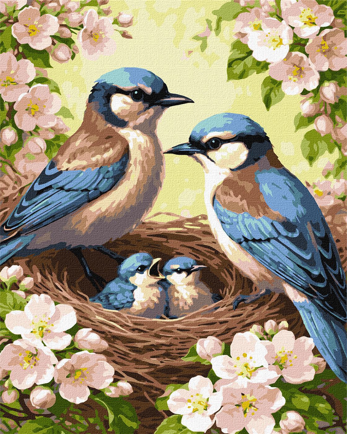 Картина по номерам "Семья синиц в цвете" 40*50см, термопакет, ТМ Идейка, Украина