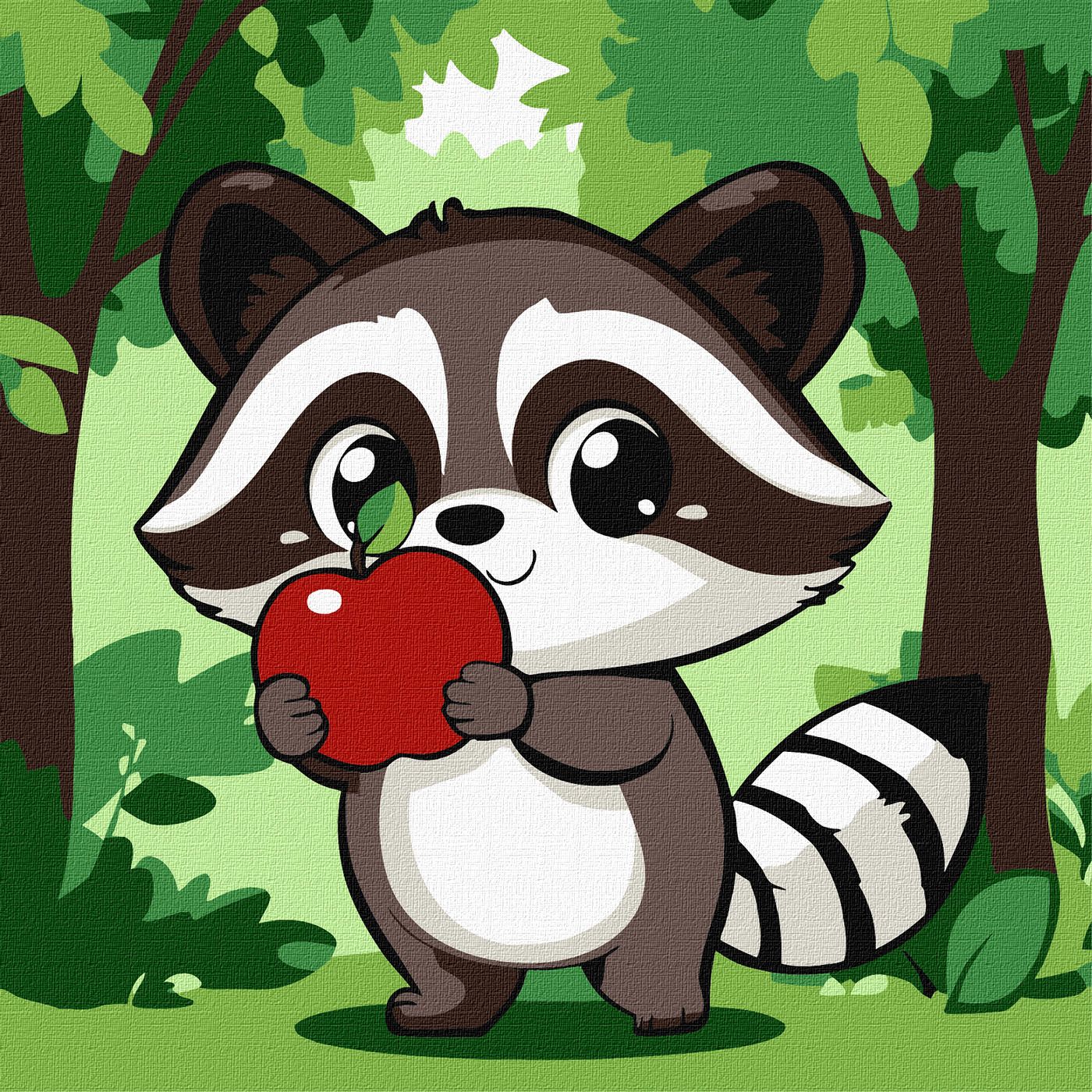 Картина по номерам "Милый енот с яблочком" 30х30см, термопакет, ТМ Идейка, Украина