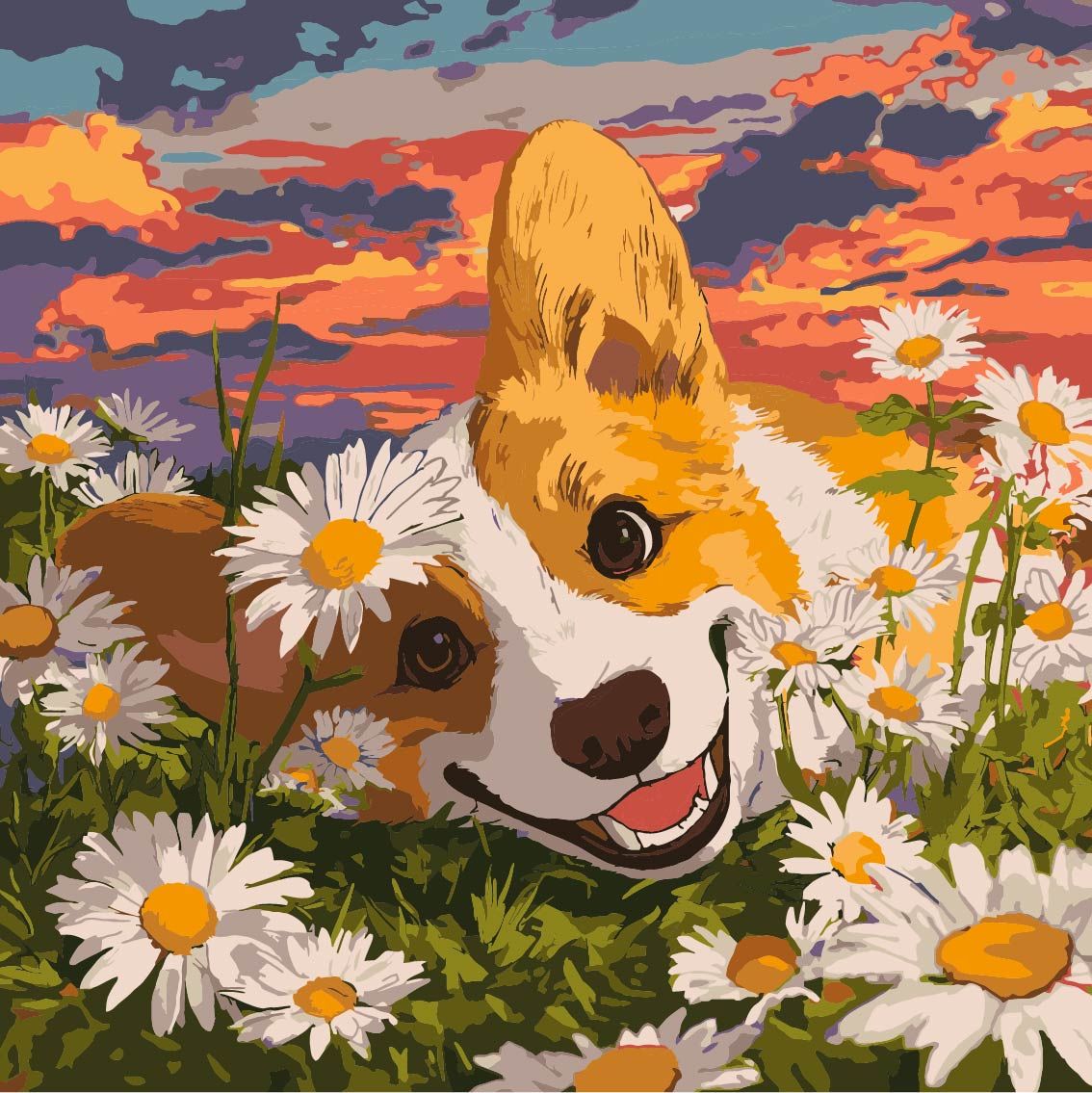 Картина по номерам "Корги в ромашках" 40*40см, термопакет, ТМ Идейка, Украина