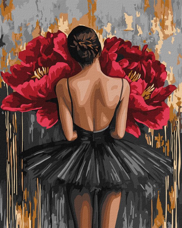 Картина по номерам "Балерина с красными пионами с красками металлик" 40x50см, термопакет, ТМ Идейка, Украина