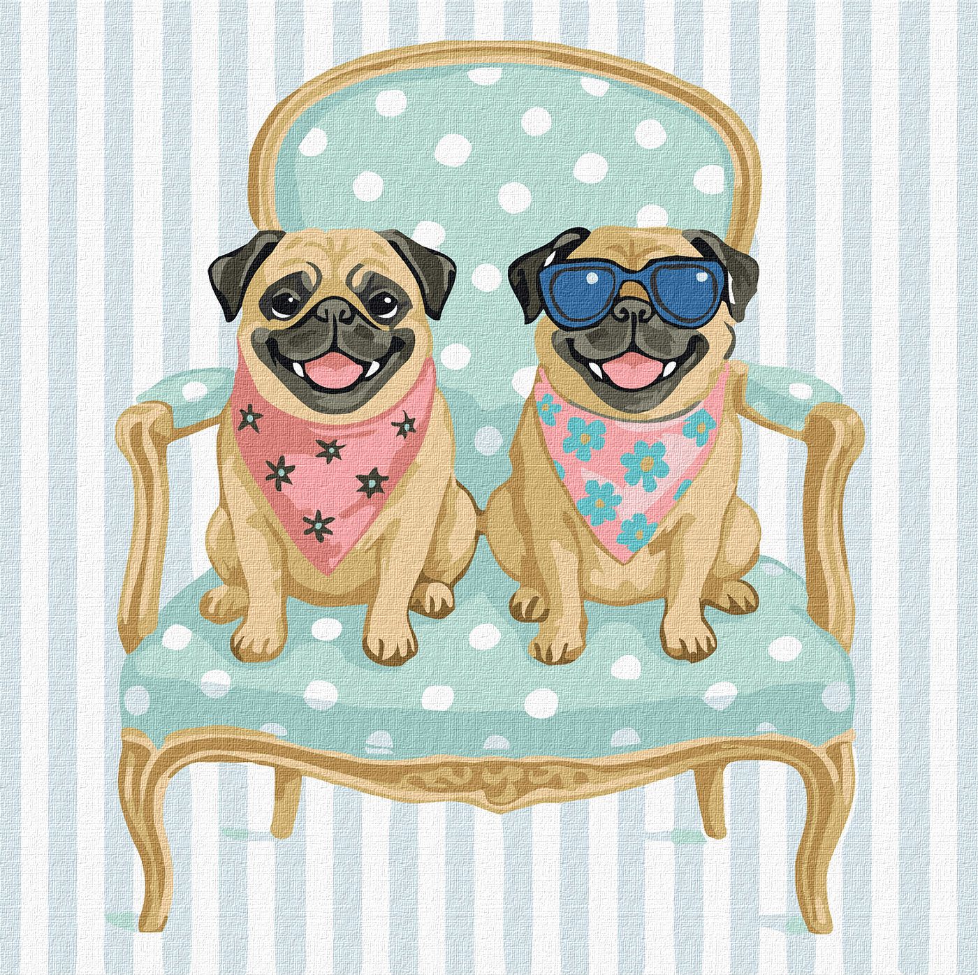 Картина по номерам "Мопсы" 40x40см, термопакет, ТМ Идейка, Украина
