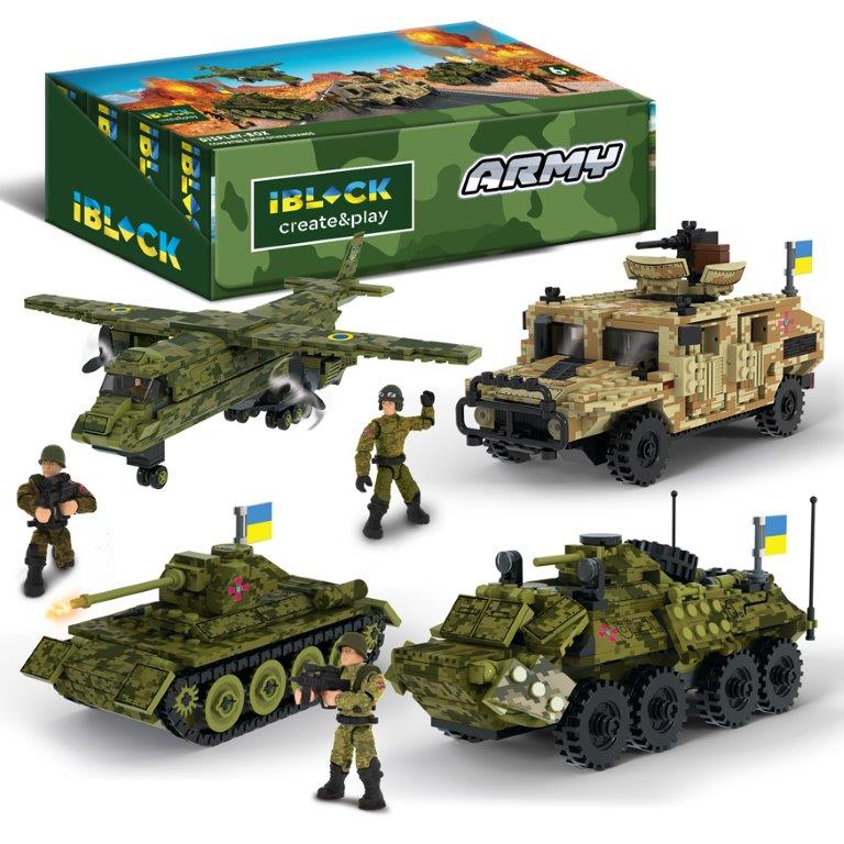 Конструктор IBLOCK АРМИЯ 1182дет., инструкция на украинском языке, наклейкии комплект, в кор. 63,5*42,5*9см (6шт)