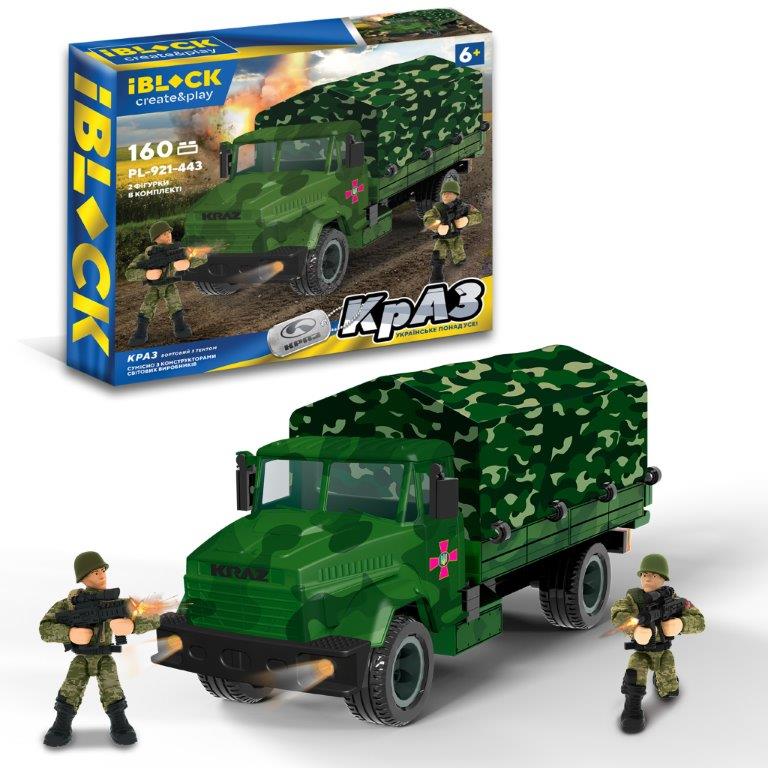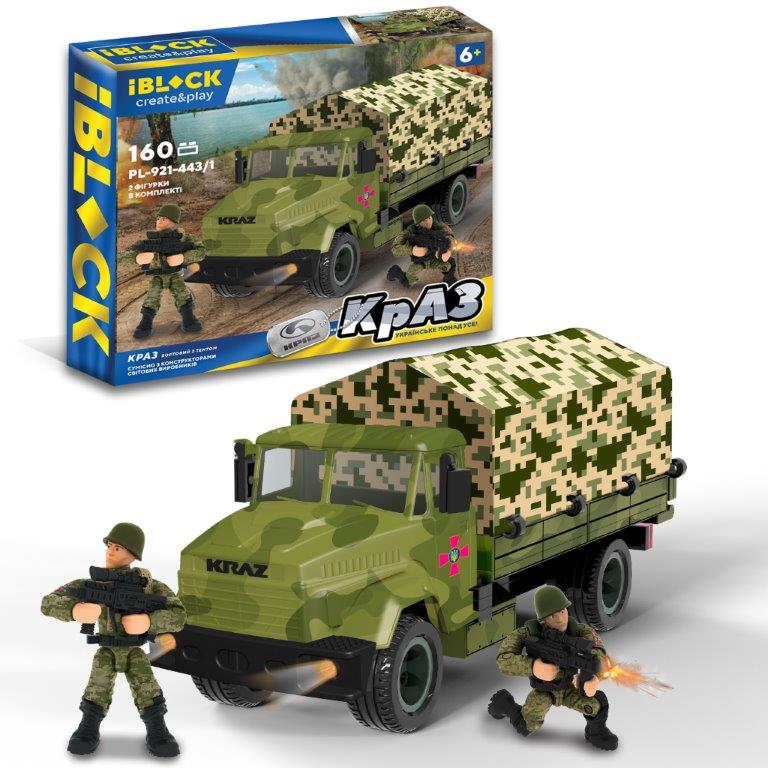 Конструктор IBLOCK Армия, КрАЗ с тентом, 160дет, 2 фигурки, в кор. 28,5*6,4*25см (12шт)