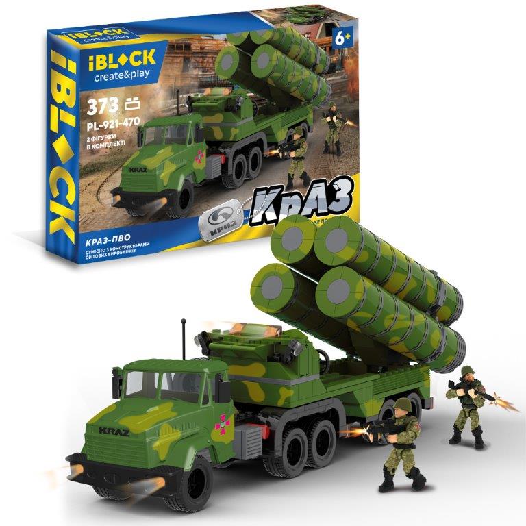 Конструктор IBLOCK Армия, КрАЗ ПВО, 373дет.2 фигурки, в кор. 38*6,4*28см (12шт)