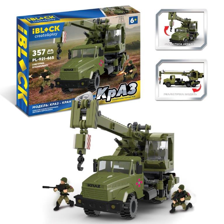 Конструктор IBLOCK Армия КРАЗ Кран, 357 дет, 2 фигурки, в кор. 37*5*26*6см (12шт)