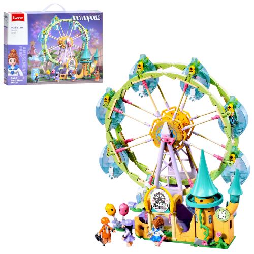 Конструктор SLUBAN розовая серия, парк развлечений, замок, колесо обзора, фигурки, 504дет, в кор. 42,5*33*7см (12шт)