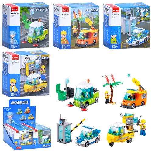 Конструктор SLUBAN ЦЕНА ЗА 1ШТ городская серия, машина/спецтехника, от 73дет, в кор. 8шт(4виды) в дисплее, 24,5*25,5*12,5см (128шт)