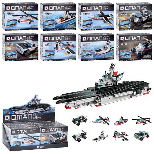 Конструктор Qman транспорт, от 66дет, 8в1(авианосец), 8шт(8видов) в дисплее, 38*14*19,5см (96шт)