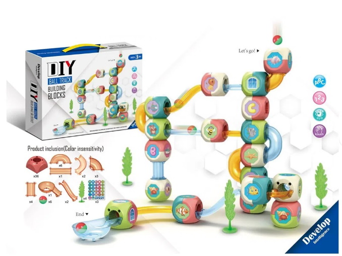 Конструктор лабиринт, блоки, шары, в кор. 31*23*6см (60шт)