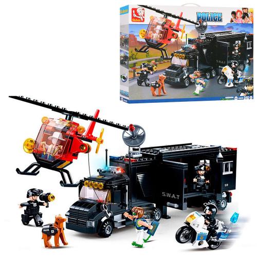 Конструктор "SLUBAN" "Полиция" 540 дет., трейлер-база, вертолет, в кор. 47,5*33*6,5см(12шт)