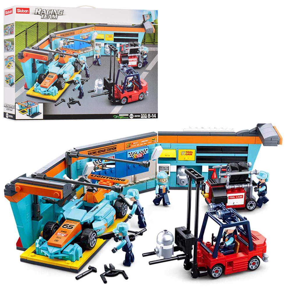 Конструктор "SLUBAN" СТО, гонка, машина, погрузчик, фигурки, 555дет, в кор. 48*33,5*7см (12шт)