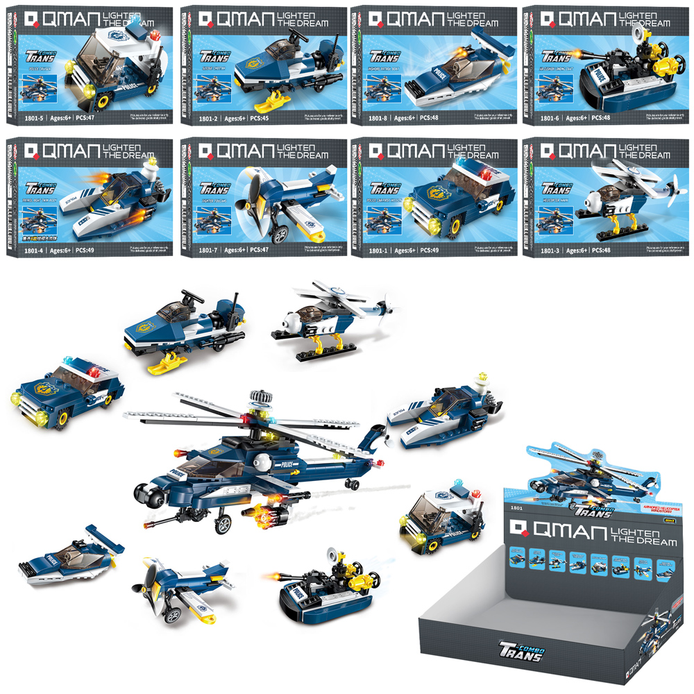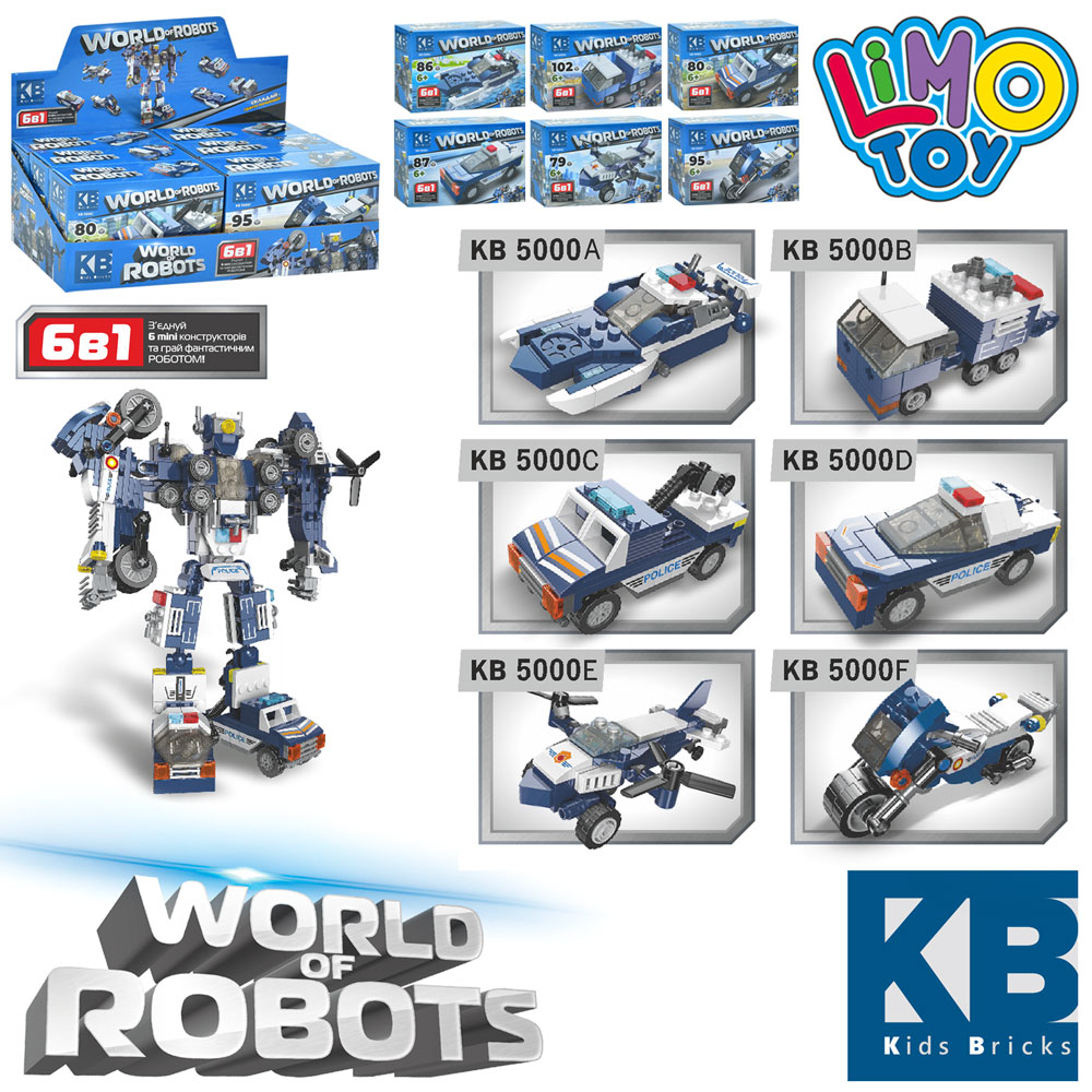 Конструктор LIMO TOY полиция, транспорт, ЦЕНА ЗА 1ШТ, 6 видов (от 79дет), в корр. 6в1, 6шт в дисплее, 29*10*13,5см (96шт)
