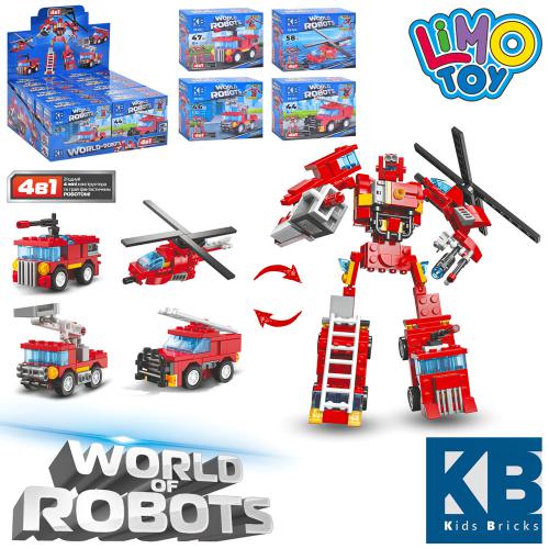 Конструктор пожарная серия, 2в1, от 44дет, LIMO TOY ЦЕНА ЗА 1ШТ, инерция, 4 вида, в дисплее, 29*25*12см (144шт)