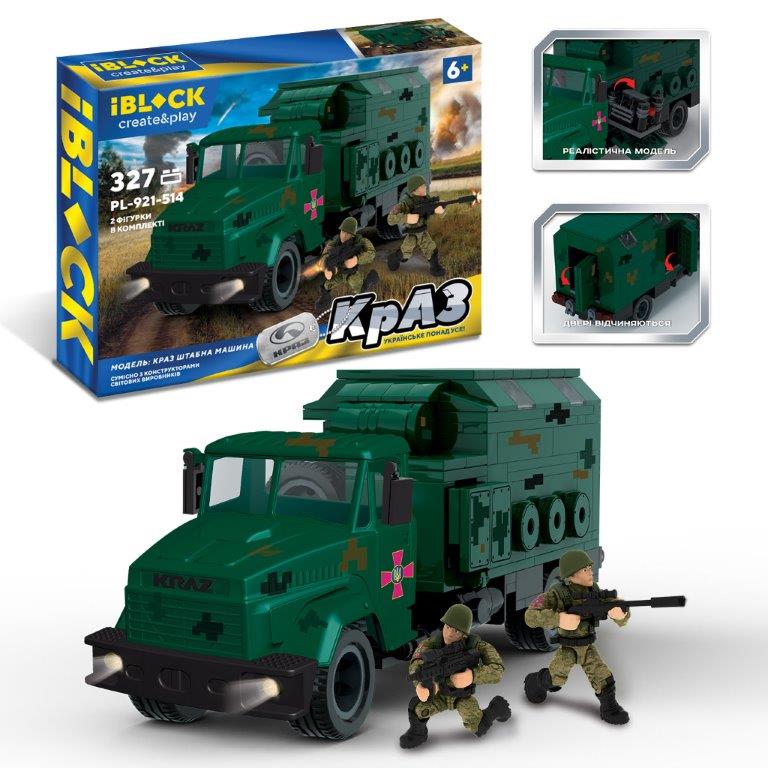 Конструктор IBLOCK Армия, КрАЗ Штабная машина, 327дет., 2фигурки, в кор. 37,5*6*26см (12шт)