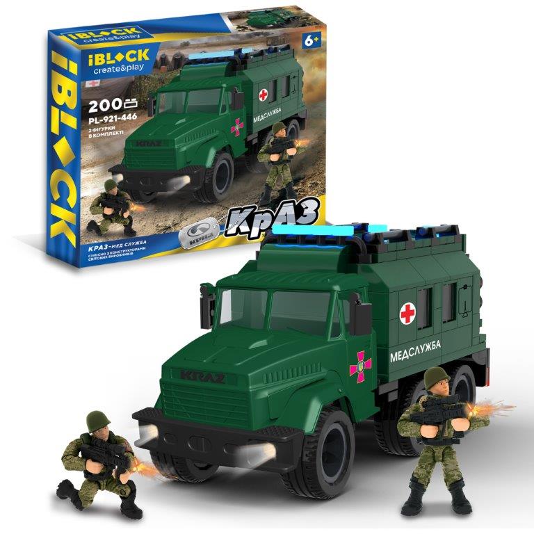 Конструктор IBLOCK Армия, КрАЗ Мед служба, 200дет., 2 фигурки, в кор. 28,5*6,4*25см (12шт)