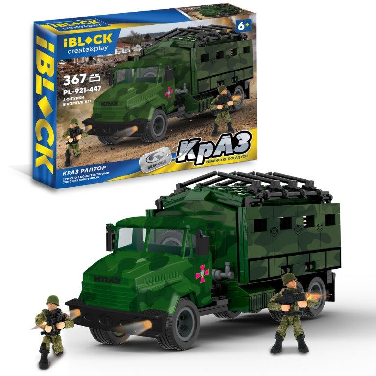 Конструктор IBLOCK Армия, КрАЗ РАПТОР 367дет., 2 фигурки в кор. 38*6,4*28см (12шт)