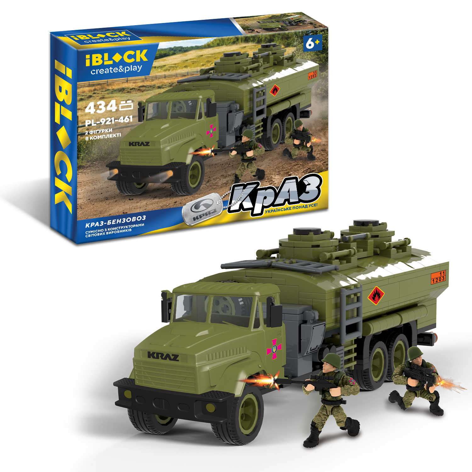 Конструктор IBLOCK Армия, КрАЗ БЕНЗОВОЗ, 434дет, 2 фигурки в кор. 36*5*23см (12шт)