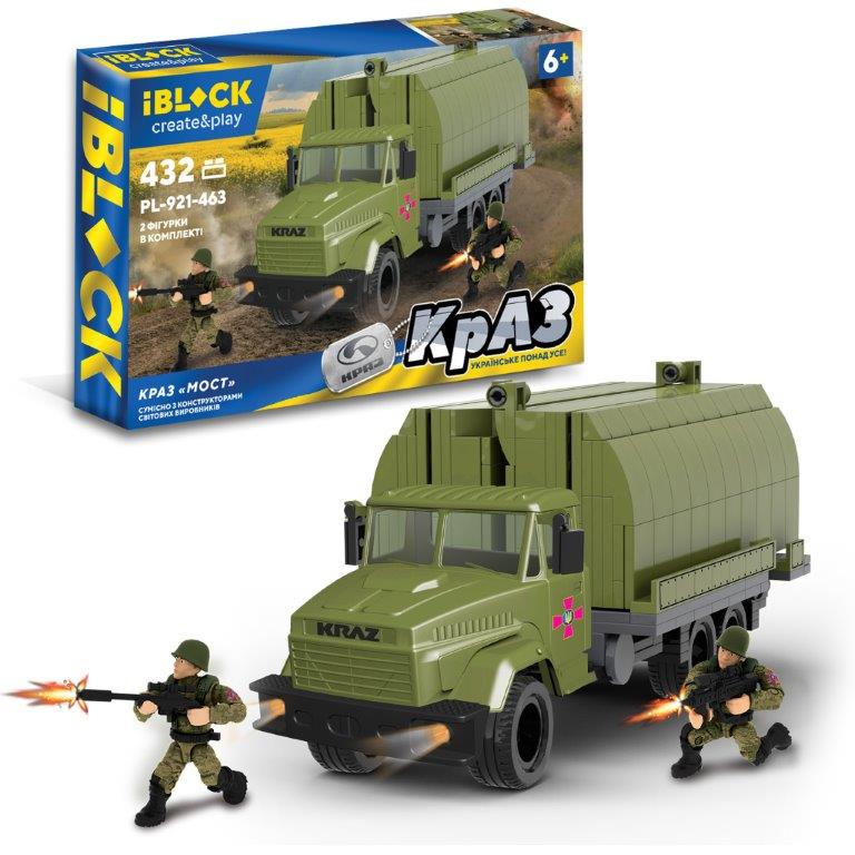 Конструктор IBLOCK Армия, КрАЗ МОСТ 432дет, 2 фигурки в кор. 38*6,4*28см (12шт)
