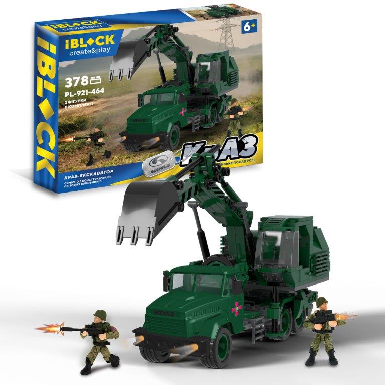 Конструктор IBLOCK Армия, КрАЗ Экскаватор, 378дет, 2 фигурки, в кор. 38*6,4*28см (12шт)