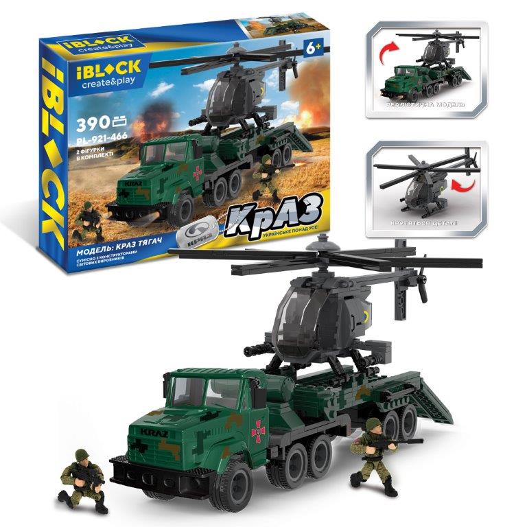 Конструктор IBLOCK Армия КРАЗ Тягач, 390 дет, 2 фигурки, в кор. 37,5*26*6см (12шт)