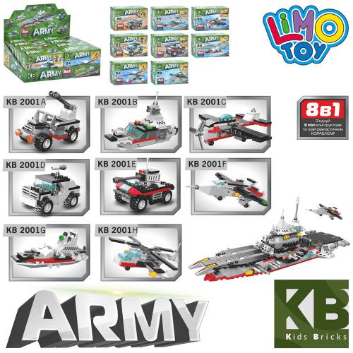 Конструктор военная техника LIMO TOY, 2в1, ЦЕНА ЗА 1ШТ, 8видов (от 64дет), в кор. 8в1, 8шт в дисплее, 29*10*17,5см (96шт)