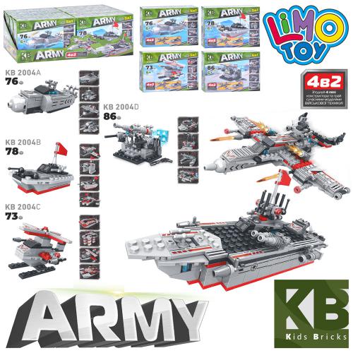 Конструктор военная техника LIMO TOY, 4в1, ЦЕНА ЗА 1ШТ, 4видов (от 73дет до 86дет), в кор. 8в1, 8шт в дисплее, 39*17*14см (120шт)