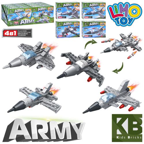 Конструктор военные самолеты LIMO TOY, 4в1, ЦЕНА ЗА 1ШТ, 4видов (от 80дет до 85дет), в кор. 8в1, 8шт в дисплее, 39*17*14см (120шт)