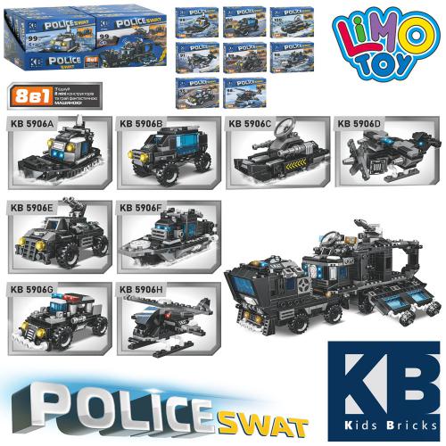 Конструктор LIMO TOY полиция, транспорт, от 91дет, ЦЕНА ЗА 1ШТ, в кор. 8в1, шт (8видов) в дисплее, 39*14,5*18см (96шт)