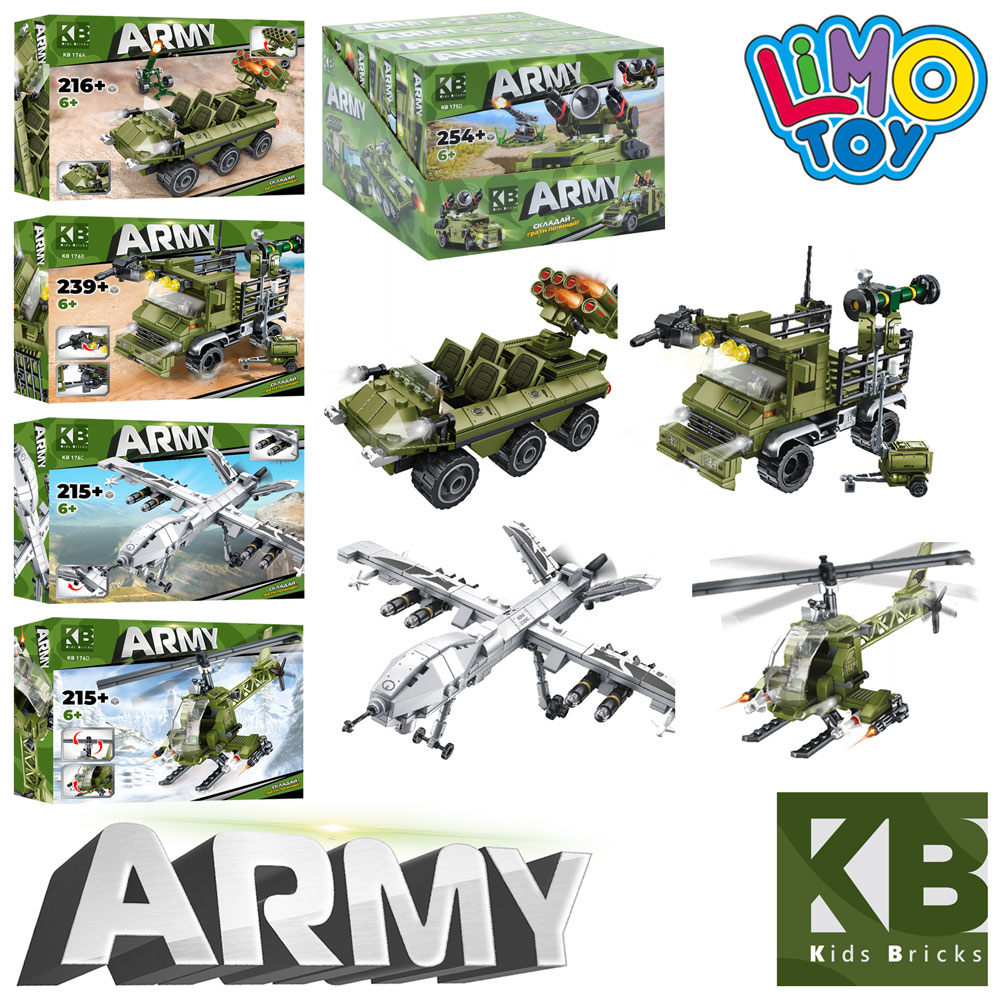 Конструктор LIMO TOY военный транспорт, от 215 дет., 4 вида, в диспл., 26*19*23см (48шт)