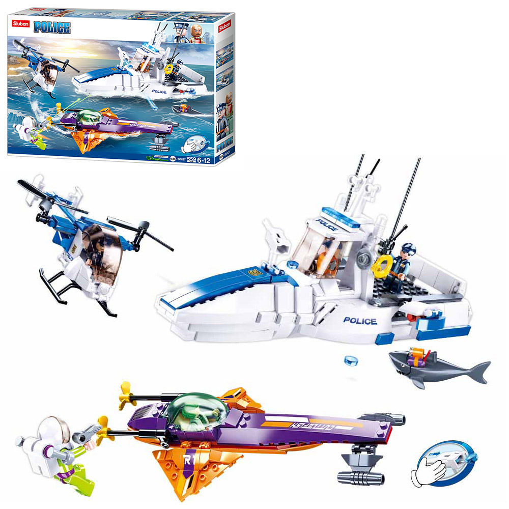 Конструктор SLUBAN Водный транспорт 2шт, вертолет, фигурка, 559 дет, в кор. 47,5*33*7см (12шт)