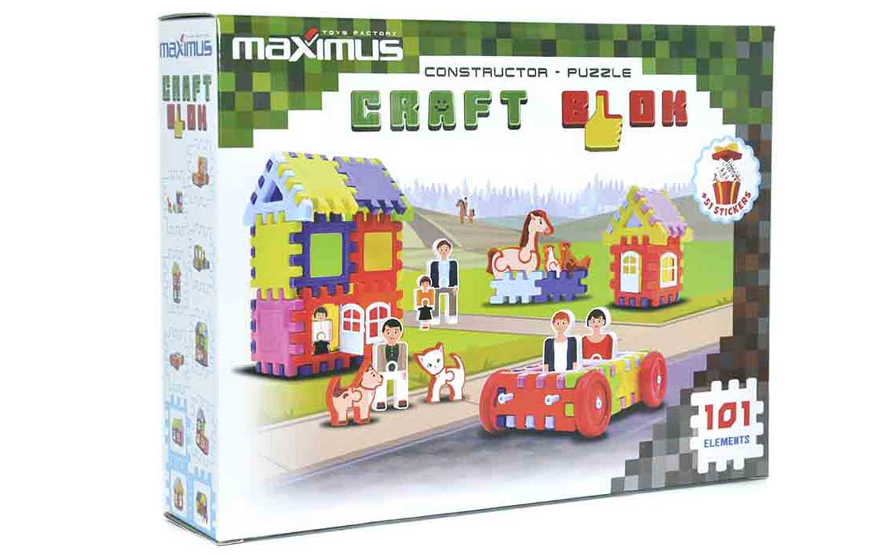 Конструктор Craft Blok 101 эл. с НАКЛЕЙКАМИ, в кор. 40*30*9см, ТМ MAXIMUS, Украина