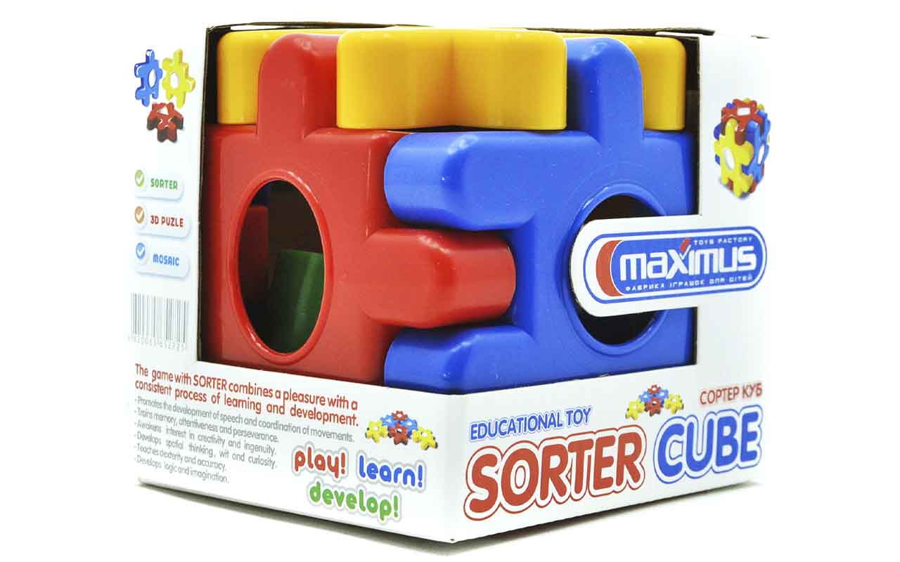 Конструктор 3Д "Сортер Куб" 12 лементов, в кор. 13*13*13см, ТМ MAXIMUS, Украина