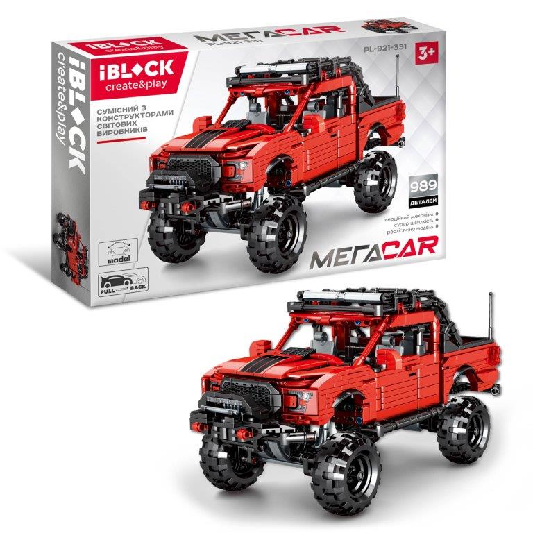Конструктор IBLOCK 989 дет., МЕГАCAR, машина 30*14*17см, в кор. 61*37*8см (6шт)